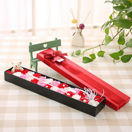 材料包裝: 產品介紹:25朵香皂花+小熊 顏色:粉+白+紅 長44*寬8.5*高4.5CM