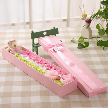 材料包裝: 產品介紹:33朵朵香皂花+仙女熊 顏色:綠+白+粉 長46*寬10*高6CM