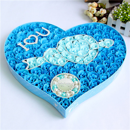 材料包裝: 香皂花:藍色,100朵一見鐘情+手鏈香皂花禮盒;尺寸:寬約40.5com,高約36com,厚約4.5com