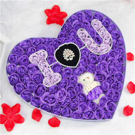 材料包裝: 香皂花:紫色,100朵IU浪漫小熊+戒指香皂花禮盒;尺寸:40*35*4.5com