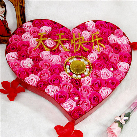 材料包裝: 香皂花:紅粉色,100朵天天快樂+手鏈香皂花禮盒;尺寸:40*37*4.5com