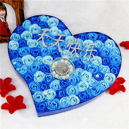 材料包裝: 香皂花:兩色藍,100朵天天快樂+手鏈香皂花禮盒;尺寸:40*37*4.5com