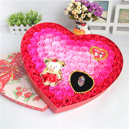 材料包裝: 香皂花:紅色;92朵香皂花+戒指+小熊;尺寸:40*38*5com;
