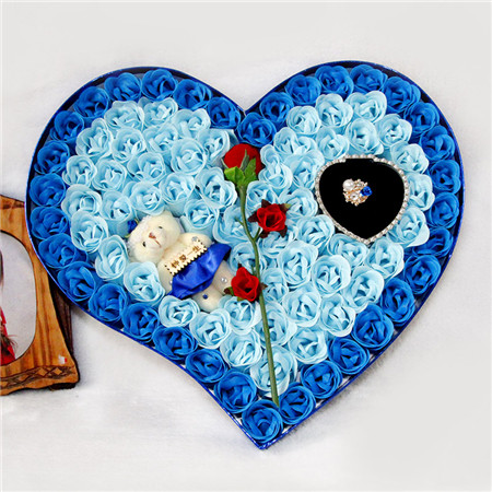 商品簡介:香皂花:藍色,92朵香皂花+1枝花+小熊+戒指;尺寸:42*40*5cm;