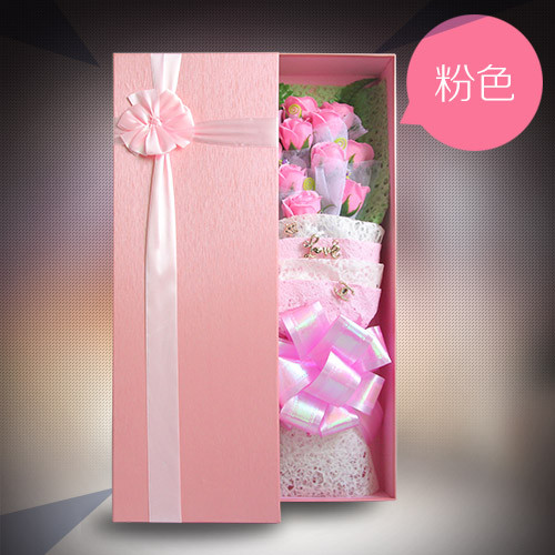 材料包裝: 11朵粉色香皂花禮盒,粉色禮盒包裝。