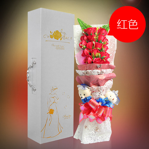 材料包裝: 19朵紅色香皂花花束 高檔禮盒包裝。