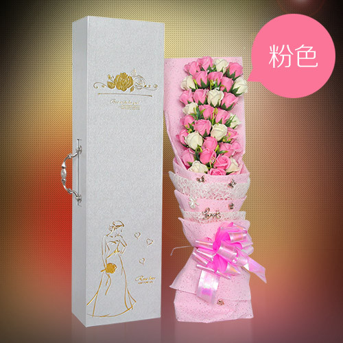 商品簡介:33朵香皂花粉色白色搭配,高檔禮盒包裝。