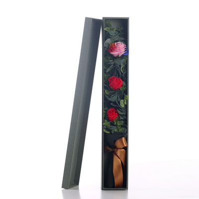 材料包裝: 產品簡稱:1朵七彩+2朵紅長條盒花束,材料:一朵巨型七彩,2朵5層香皂花,尺寸:尺寸:65*10*8CM