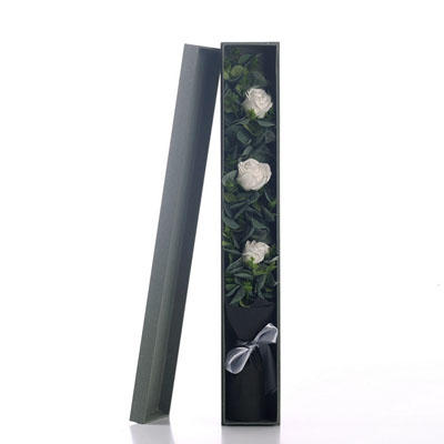 商品簡介:產品簡稱:3朵白色香皂花長條盒花束,尺寸:尺寸:65*10*8CM