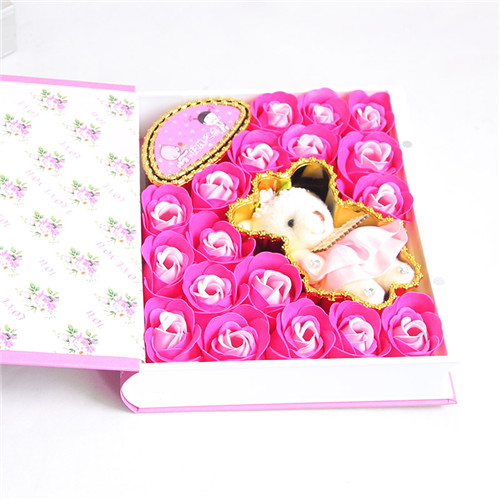 商品簡介:18朵粉色香皂花禮盒。小熊書本款教師節快樂