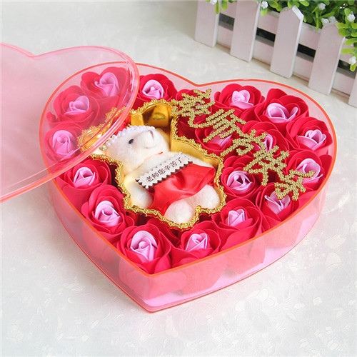 商品簡介:香皂花老師款紅色小熊 心型禮盒:18朵;長20.5*寬18.5*高4.5CM;