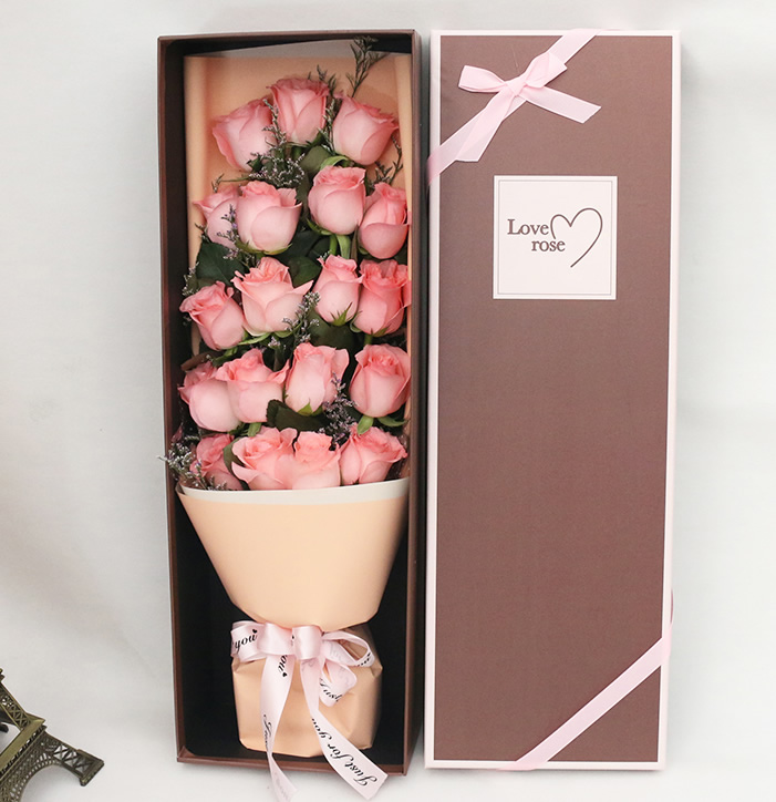 材料包裝: 19只粉玫瑰,禮盒包裝。