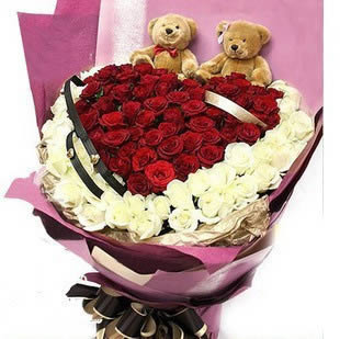 商品簡介:33支紅色玫瑰,33支粉或者白色玫瑰,小卡通熊2個。精美包裝