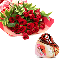 商品簡介:紅玫瑰21支、蓬萊松、綠葉搭配。 [包 裝]:皺紋紙單面包裝。 [配送范圍]:本產品全國各地均可送達 [109克德芙心型禮盒巧克力,根據本地巧克力可能會有所不同,但保證同等價值]