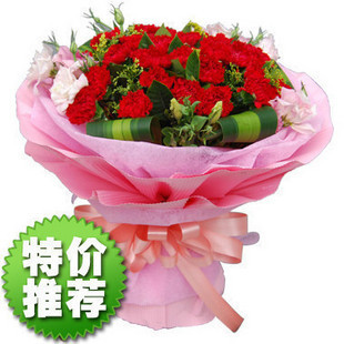 商品簡介:【花 材】 33朵康乃馨+配花+綠材 【包 裝】 精美粉色皺紋紙包裝