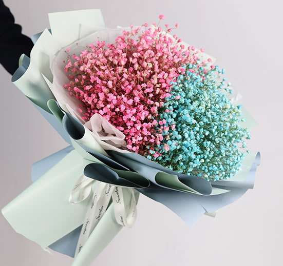 材料包裝: 紅粉白色滿天星3扎,皺紋紙圓形包裝,豐滿包裝。