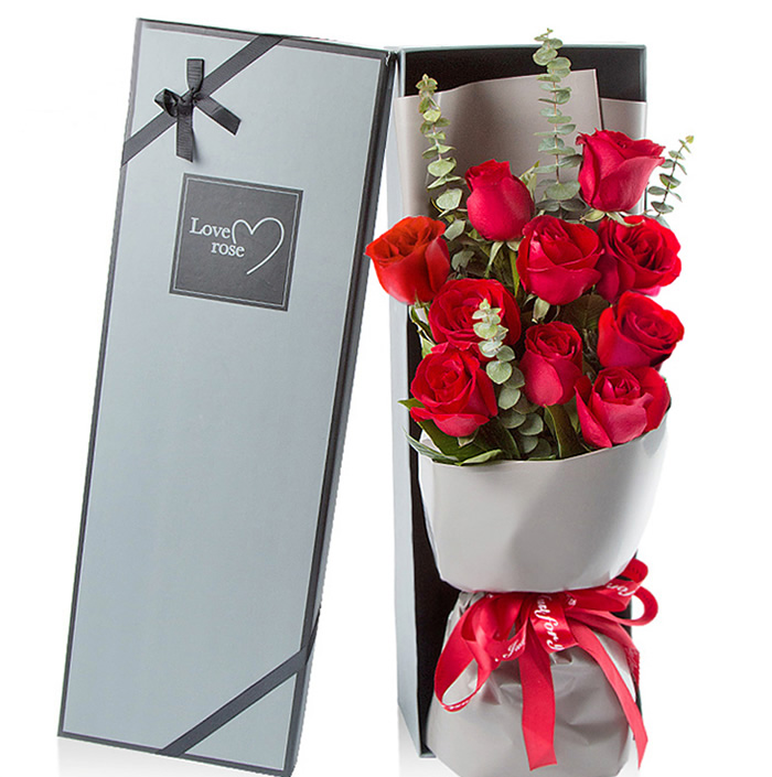商品簡(jiǎn)介:11朵紅玫瑰,尤加利葉,禮盒包裝.