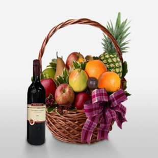 商品簡介:[材 料]:蘋果橙子葡萄菠蘿火龍果紅酒 [包 裝]:手提精美包裝,配蝴蝶結束扎。