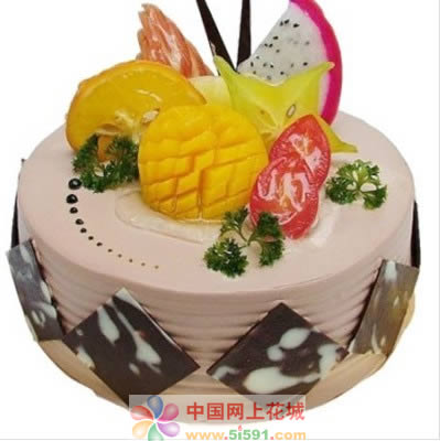 商品簡介:慕斯蛋糕,中間夾心慕斯,表面水果巧克力裝飾