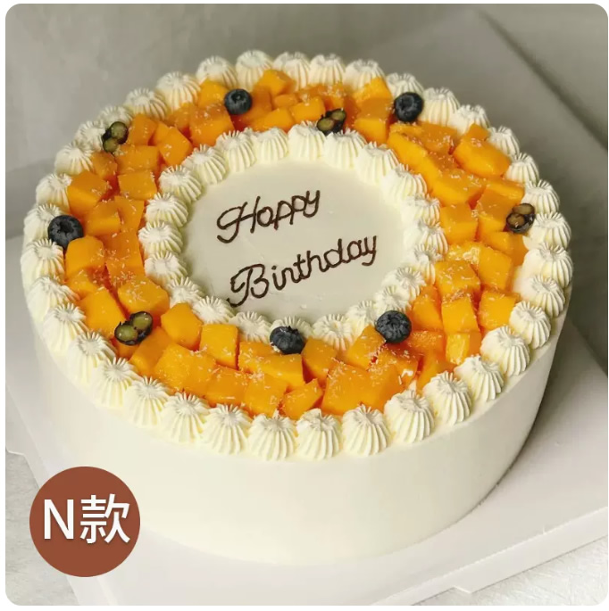 材料包裝: 圓形冰淇凌蛋糕,中間一層巧克力醬,時令水果、巧克力片裝飾