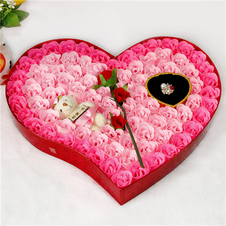 材料包裝: 香皂花:玫紅,92朵香皂花+1枝花+小熊+戒指;尺寸:42*40*5cm;