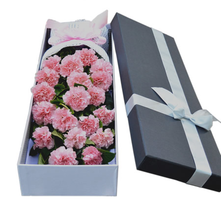 材料包裝: 19朵粉色康乃馨,精美禮盒