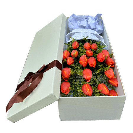 材料包裝: 21支橙色郁金香 黃英搭配 禮盒包裝