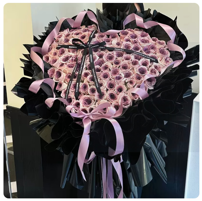 材料包裝: 99朵烏梅子醬蔓塔玫瑰表白求婚花束